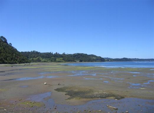 This is the coast in Liucura, a small town in Lemuy island (part of the Chiloe archipelago). At this time it was low tide; in this region the tide can go up and down several meters throughout the day.