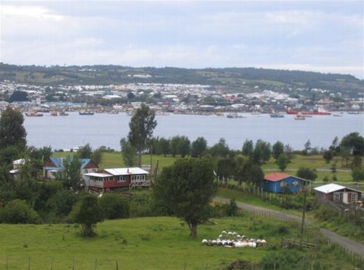 Before returning to Castro where we were staying, we drove to Quellon, where the highway ends in Chiloe. This is a view of Quellon from the south side.